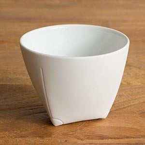 ティーカップと名付けられていますが、取っ手はなくて湯呑みのよう。でも従来の湯呑みとも違う独特のデザインが特徴です。