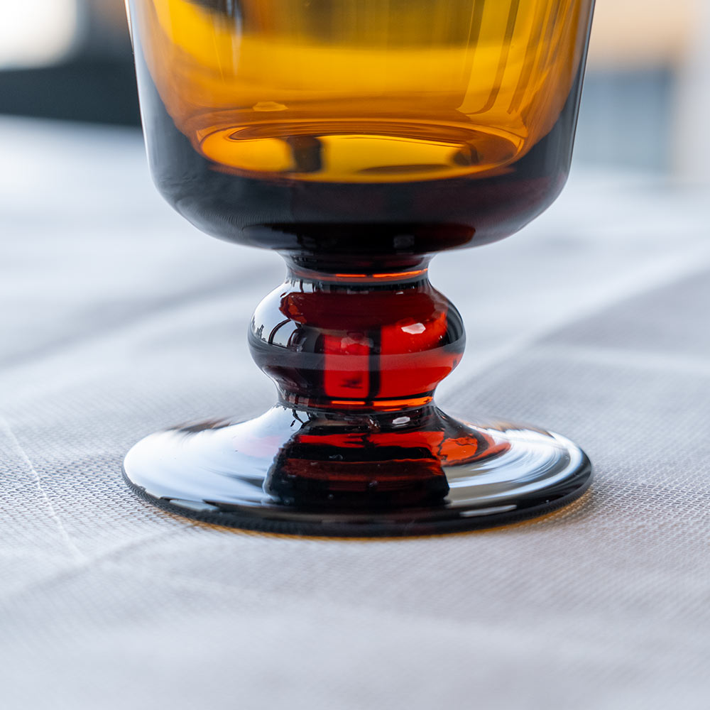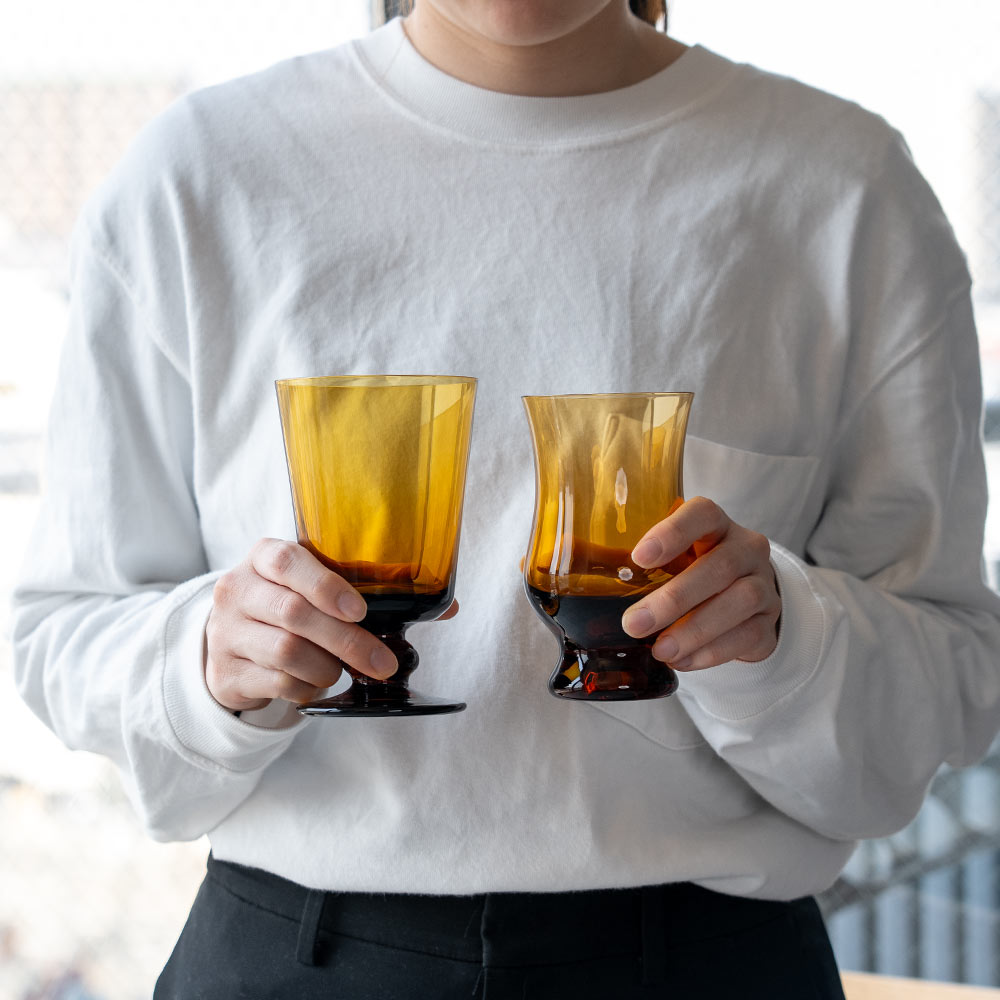 ひと目見ただけで惹きこまれる、深く落ち着いた琥珀のような色。BYRONコーヒーグラス アンバーは、レトロな表情と、洗練された美しさを持っています。ぽってりとした厚みのあるガラスは、手にしたときの重さが心地よく、ゆるやかな形状が手に馴染んでくれます。