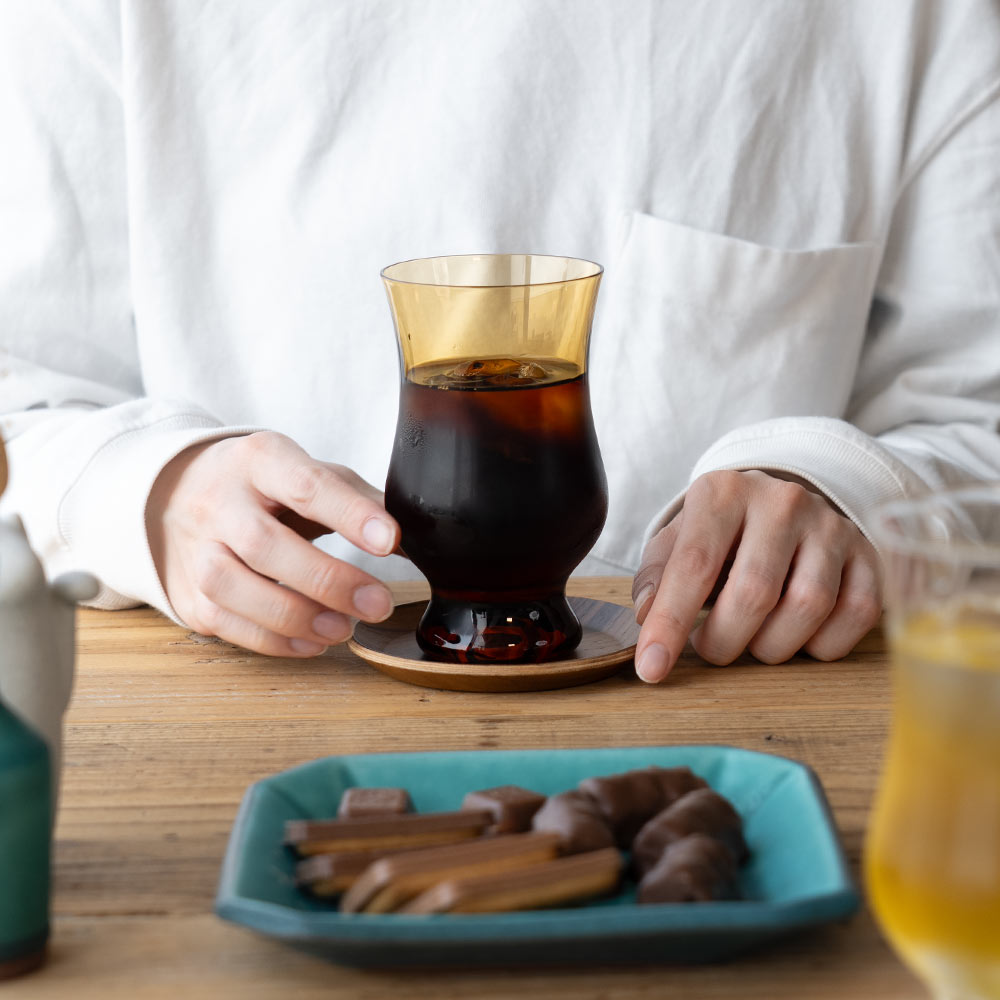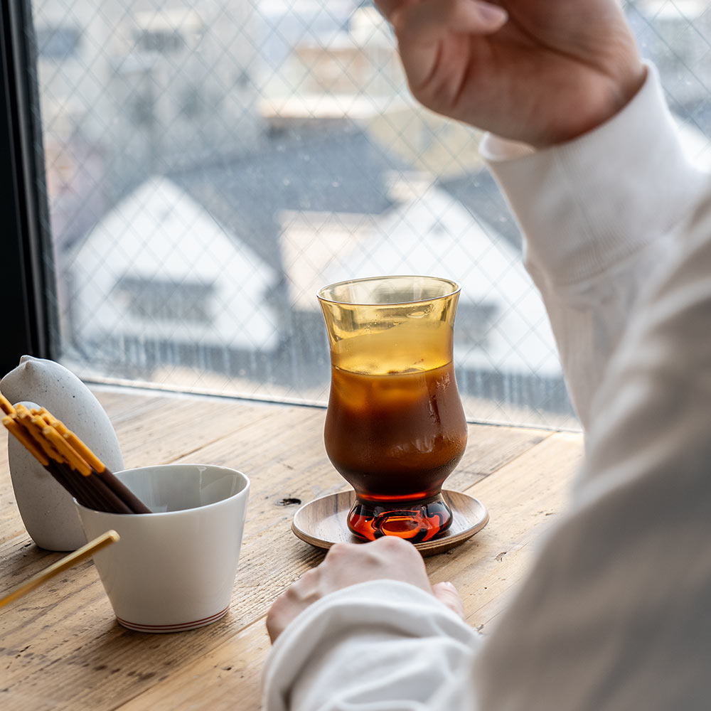 ブラックコーヒーはもちろん、炭酸水やラテなどのミルク系とも相性がよく、日常の一杯にささやかな特別感を添えてくれます。 “お気に入りの喫茶店”の空気がふっと漂ってくるような、不思議な安心感や静かな存在感のあるグラスです。
