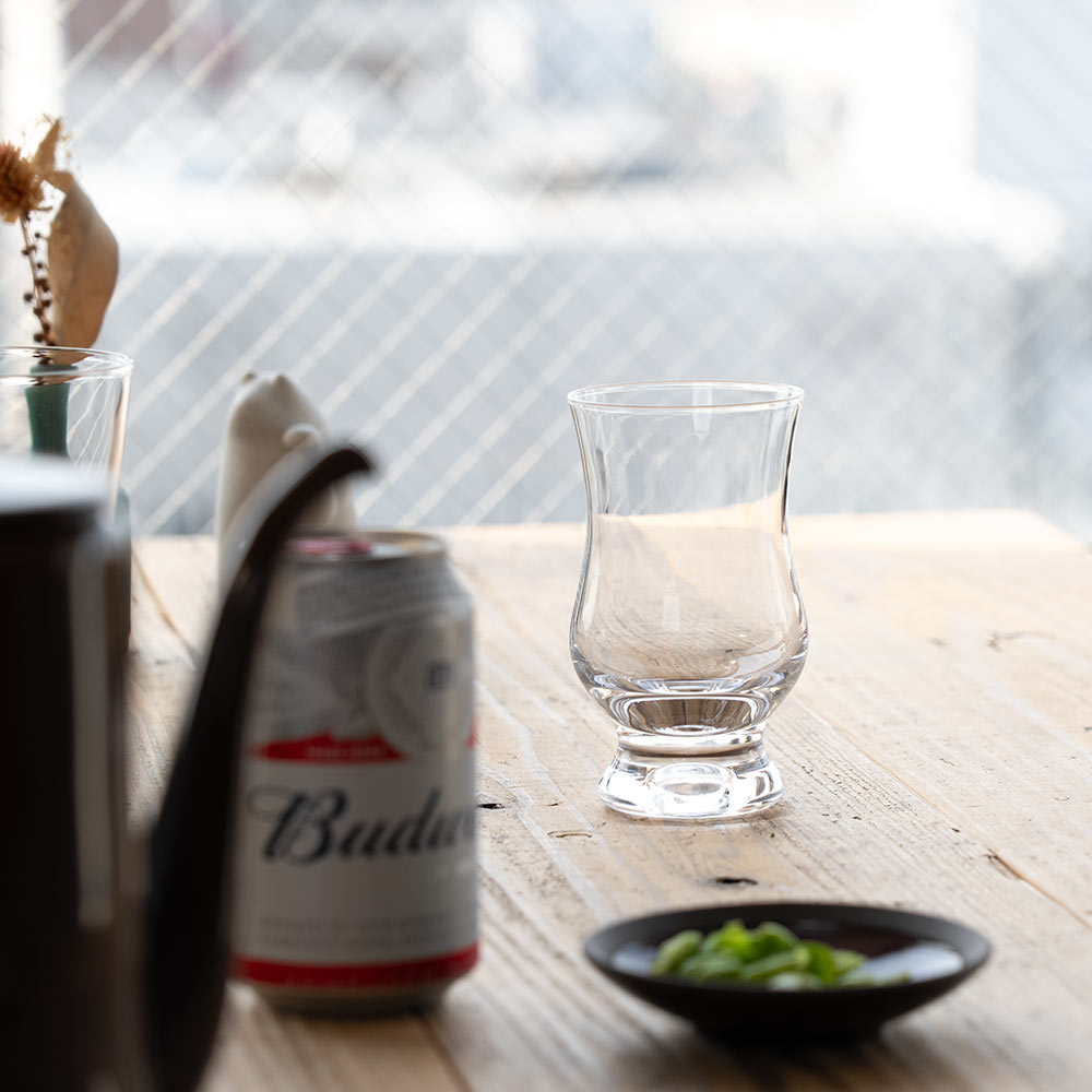 目立ちすぎず、でもふれるたびにその美しさに気づく、そんな魅力をもったデザインです。朝の一杯の水、午後のコーヒー、夜のビールまで、どんなシーンにも寄り添ってくれる万能さも嬉しいポイントです。すっきりとしたグラスをお探しの方におすすめしたい、静かながら美しい一品です。