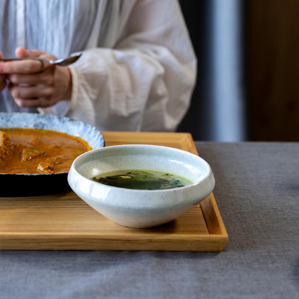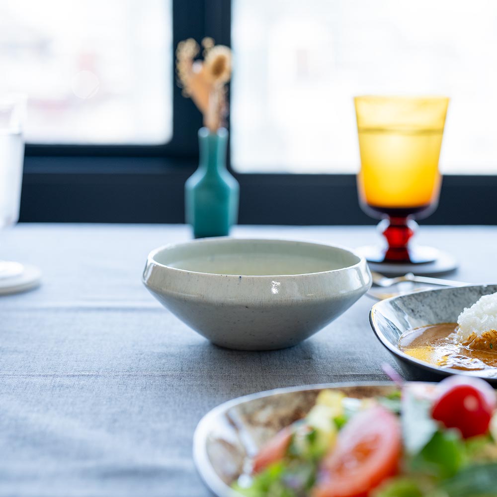 深さと丸みを持たせたデザインにより、ボウルとしてだけでなくスープカップとしても使える汎用性の高いうつわです。