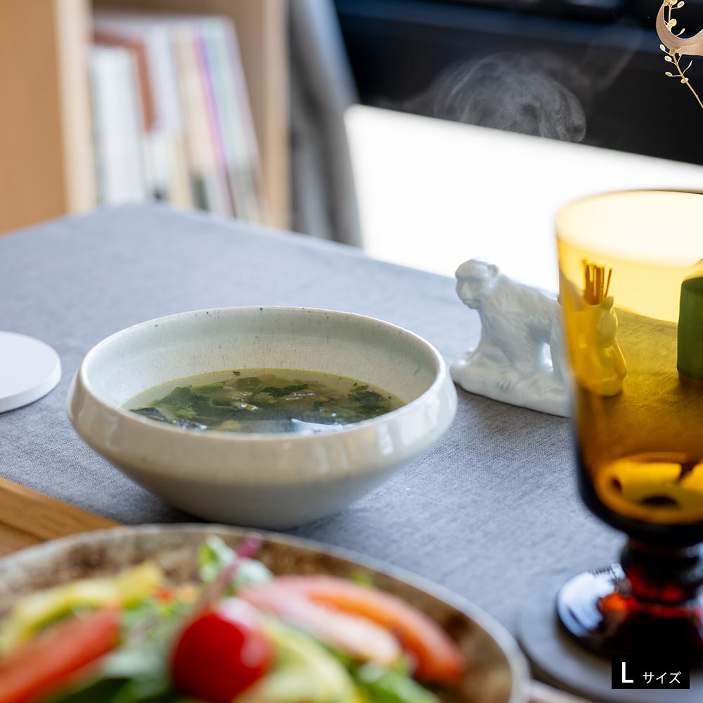 Mサイズはちょっとしたサラダや取り皿、小鉢やデザート等にちょうどよく、Lサイズはスープやシェア用の副菜などにもぴったり。和洋中問わず、どんな料理も受け止めてくれる包容力があり、「今日は何に使おうか」と選ぶ楽しさも広がります。