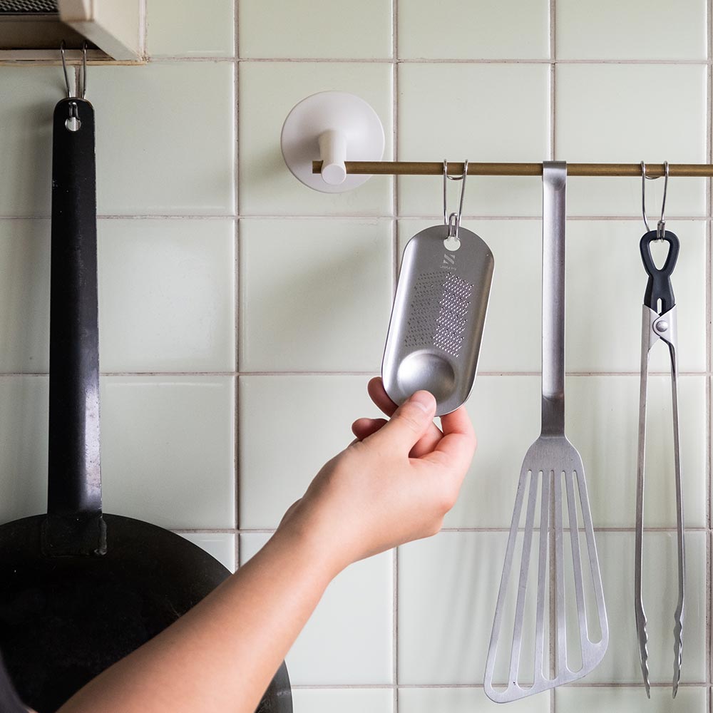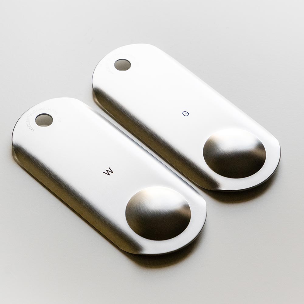 手のひらサイズだから、サッと手に取れる場所に吊るしておける便利さ。 受け皿付きで、すりおろした食材をのせたまま食卓へ出すこともできます。 わさびやしょうがはもちろん、すだち・レモン・大根おろしにも。 料理の仕上げに、欲しい分だけ「ちょいおろし」ができる新しいスタイルです。