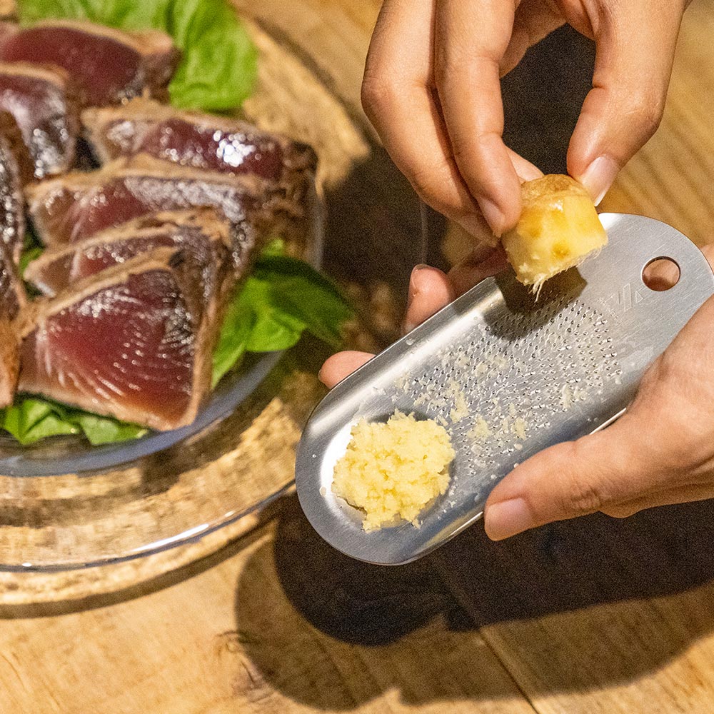 仕上げの「ちょいおろし」で薬味や香りのアクセントを添えれば、いつもの料理がぐっと美味しくなる。“仕上げのひと手間”が楽しくなる、新しいおろし金です。