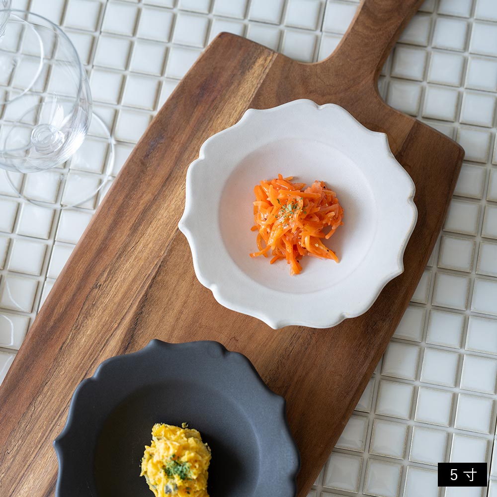 「凛花鉢」は5寸・7寸の2サイズ展開。5寸は副菜や取り皿として、7寸は主菜や大皿料理、果物の盛り付けなどにも活躍します。サイズ違いで揃えれば、日常の食卓に奥行きが生まれ、器づかいの幅も広がります。