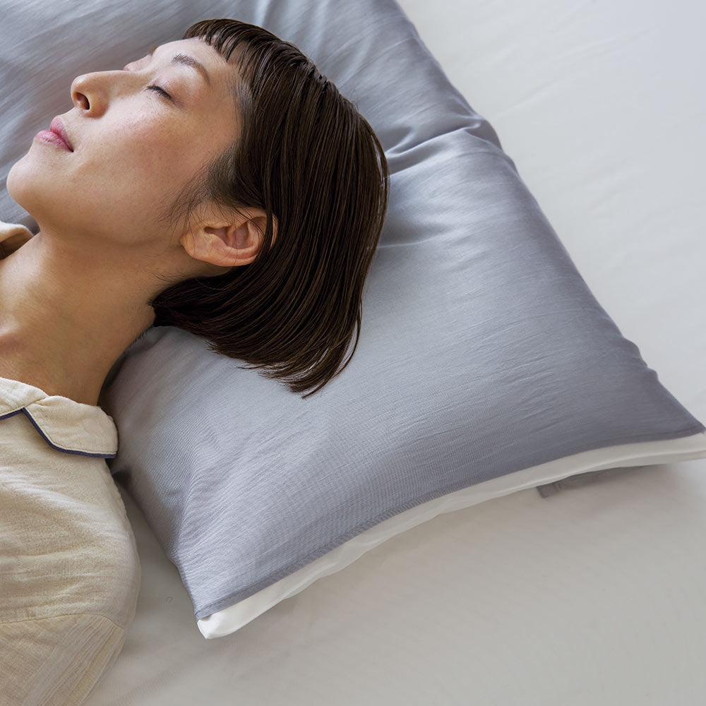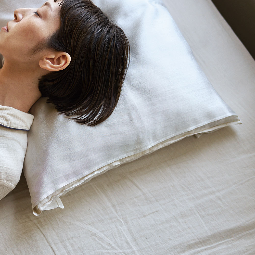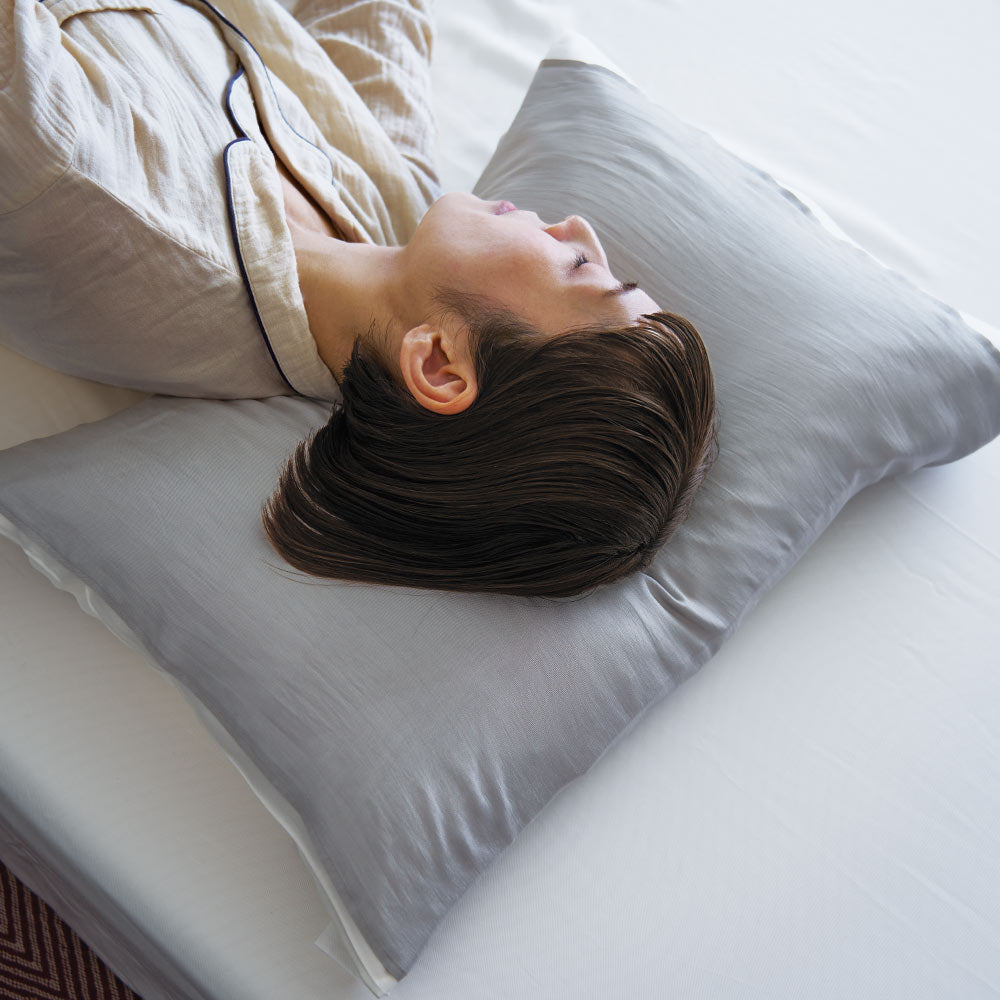 なめらかなシルク素材のピローカバーは、その摩擦をやわらかく受け止め、髪のパサつきや肌への刺激を抑えてくれます。