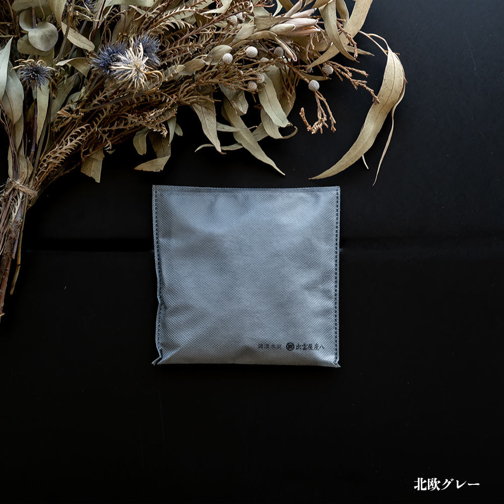 落ち着いたグレーは、他の色とも調和する万能カラー。ロゴは小さく控えめ、暮らしになじむ炭八をお試しください。