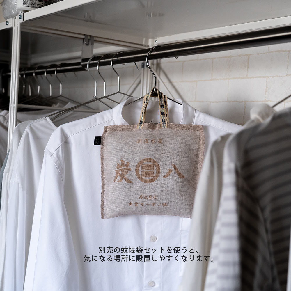 炭八は余分な湿気とイヤなニオイを取り除く「調湿木炭」です。