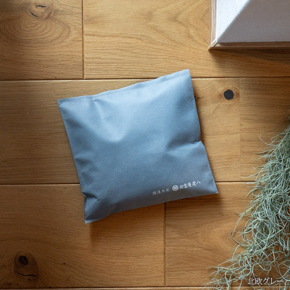 落ち着いたグレーは、他の色とも調和する万能カラー。ロゴは小さく控えめ、暮らしになじむ炭八をお試しください。 場所によって、定番ホワイトとの使い分けもおすすめ。