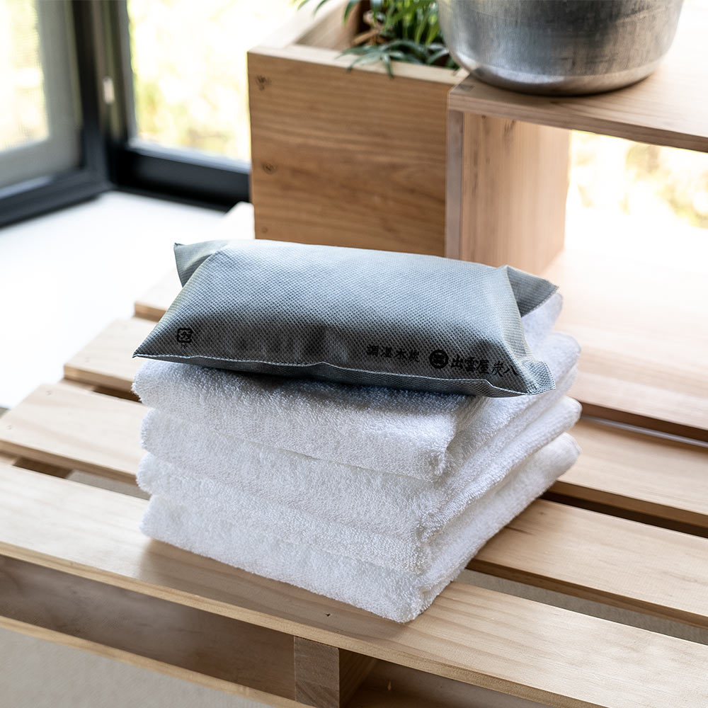 調湿や消臭に特化した炭八は、湿気・におい・結露・カビなど住まいの悩みを置くだけで軽減してくれます。 定期的に天日干しをするだけで半永久的に使えるので、買い替えの必要もありません。 使い捨ての除湿剤のようにこまめに取り替える必要もなく、環境にも優しい炭の調湿剤。 薬剤不使用の炭100%は、ペットやお子様がいる家庭でも安心してお使いいただけます。