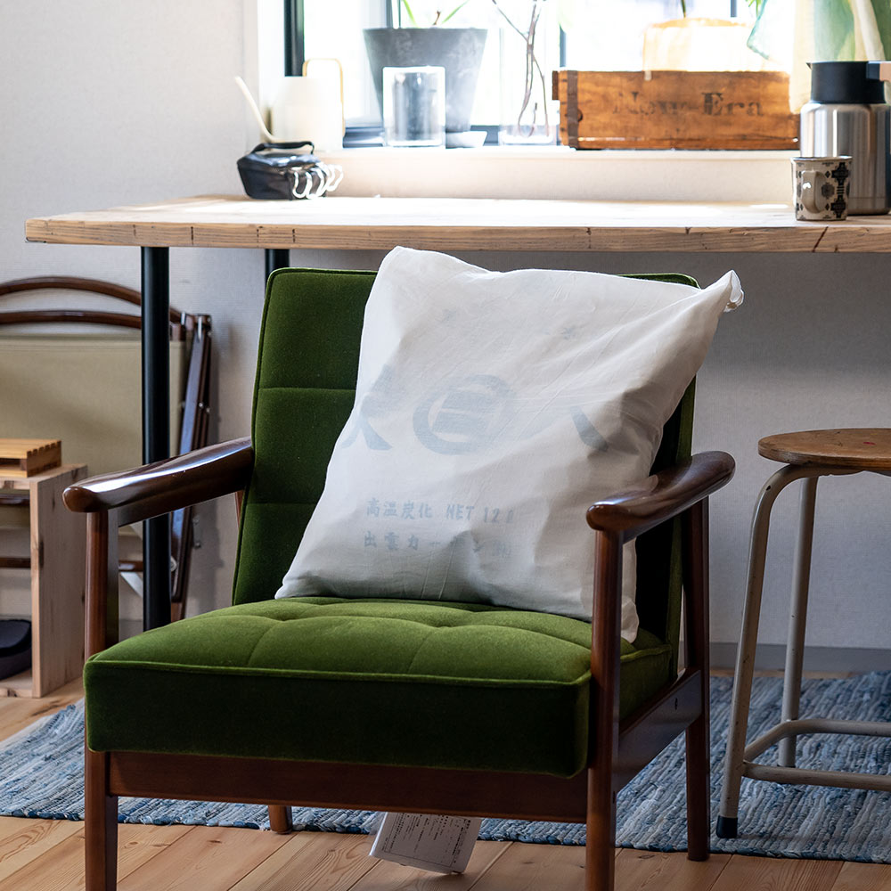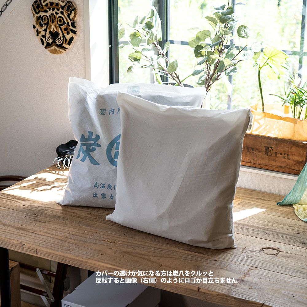 生成りカラーのナチュラルな雰囲気と、優しい風合いのコットン生地が 住まいの必需品でもある炭八をふんわりと優しくカバーしてくれます。