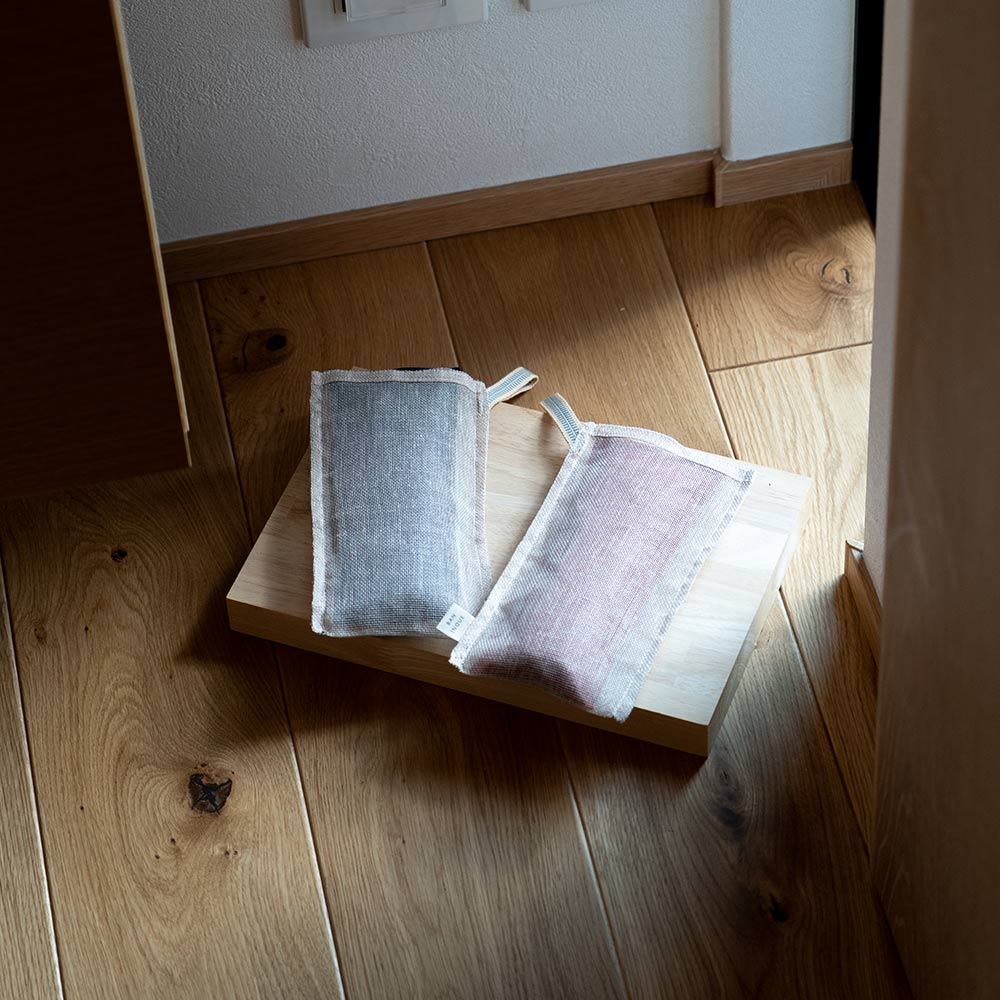 靴や小さなバッグなどに使いやすいスティック型の炭八ミニサイズ(2本組)に合わせて作りました。
