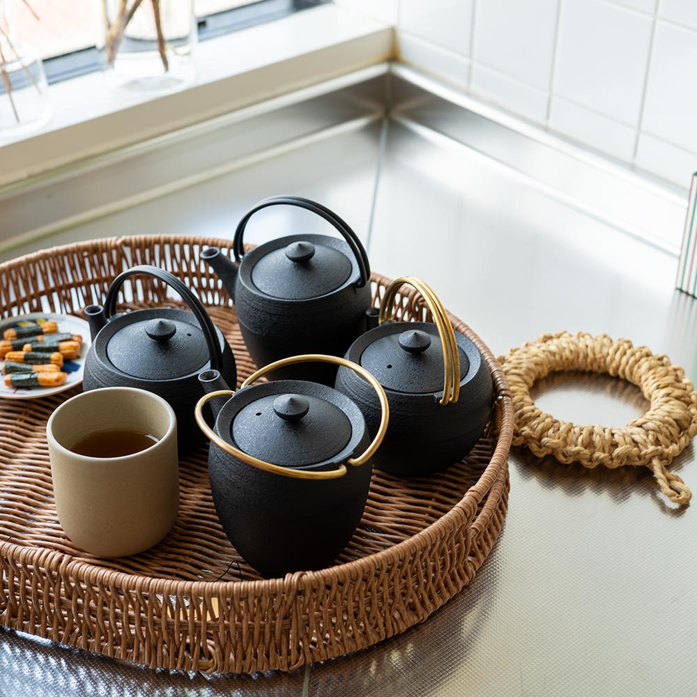 日本の伝統技術を受け継ぎながら、現代の暮らしに心地よくなじむ鋳物製品を手がける、山形鋳物の〈鋳心ノ工房〉の「ティポット」は、鉄瓶をより日常に取り入れやすくデザインされた軽やかで小ぶりな佇まいです。