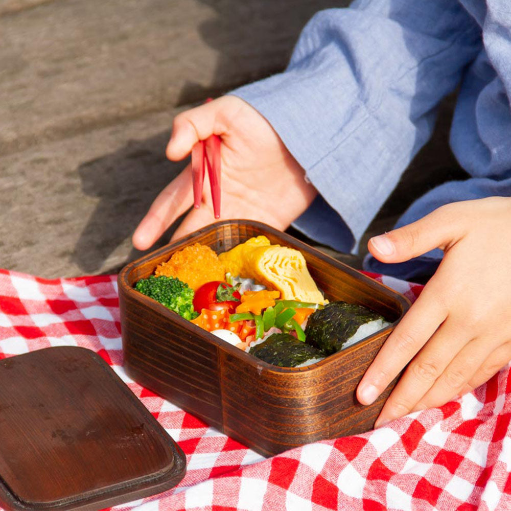 うるしの弁当箱は天然由来の漆をコーティングしているため、洗剤を使って洗うことができます。